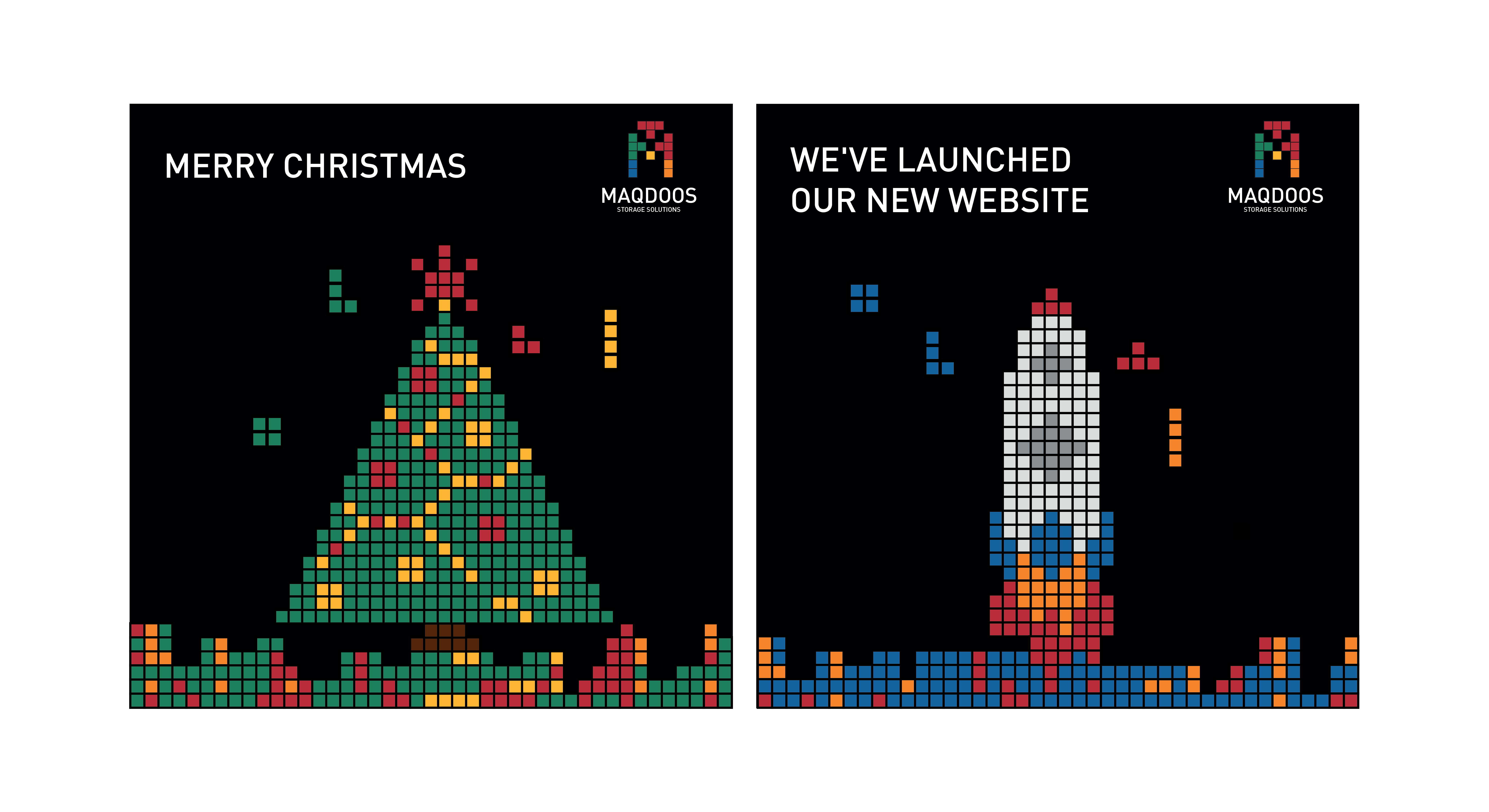 Maqdoos is a storage solutions company dedicated to helping individuals and businesses organize their spaces efficiently. The brand name, which translates to "Organizing in Layers," reflects the core philosophy of the company: maximizing space through strategic organization. The challenge was to create a brand identity that conveyed both the practicality of storage solutions and the playfulness of the process, drawing inspiration from the game of Tetris.